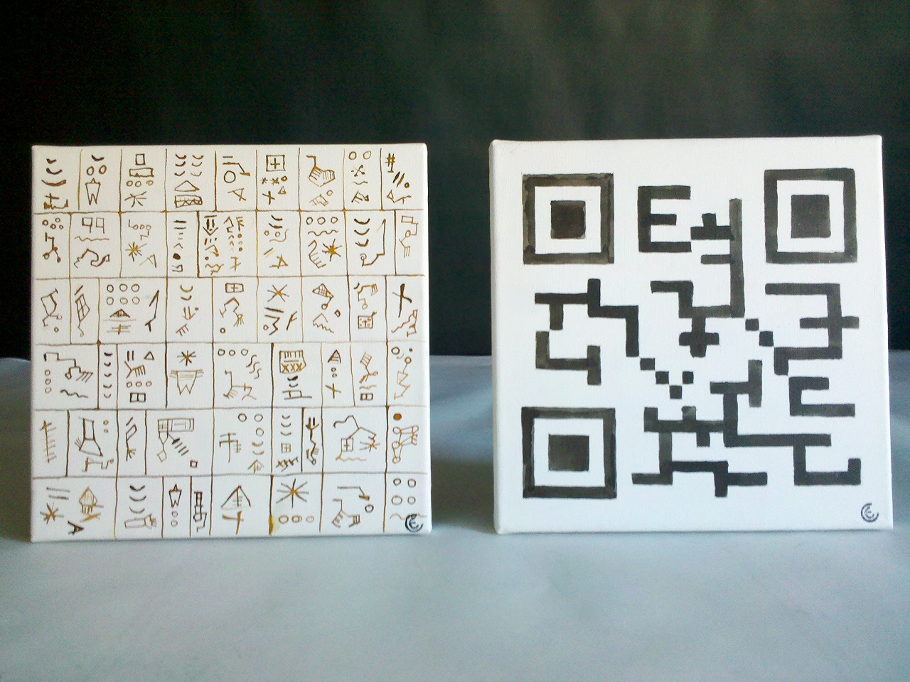 Sowohl die Keilschrift als auch der QR-Code sind Zeichen, ähnlich einer Geheimschrift - sowohl damals wie heute.