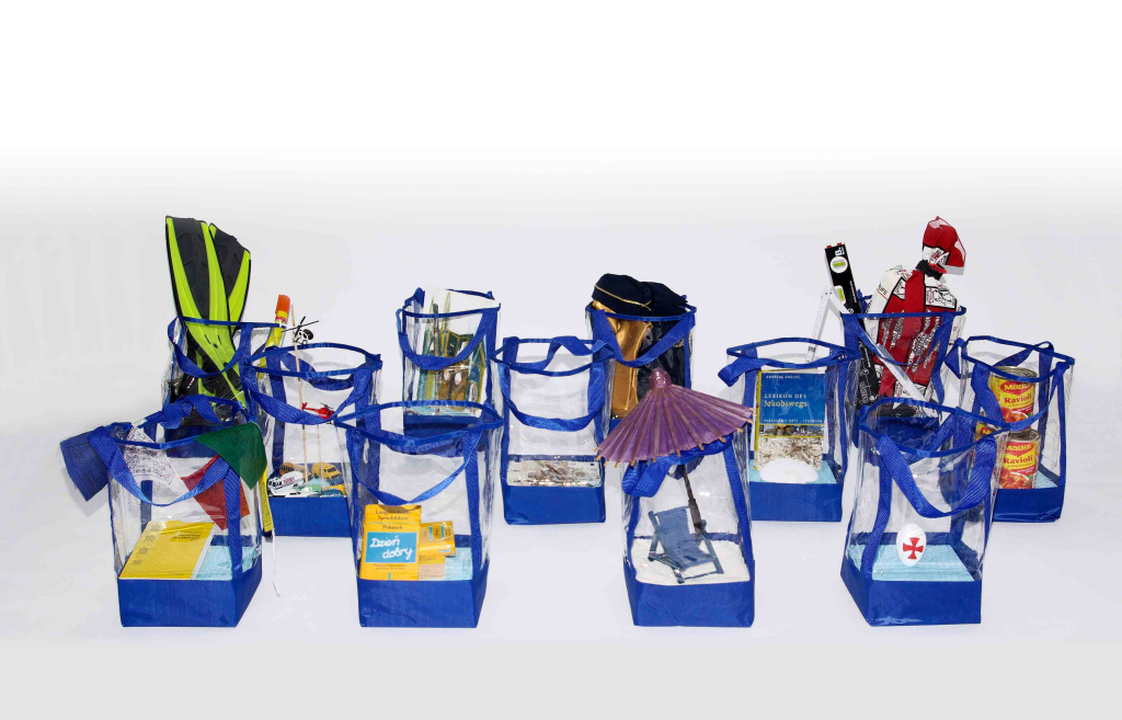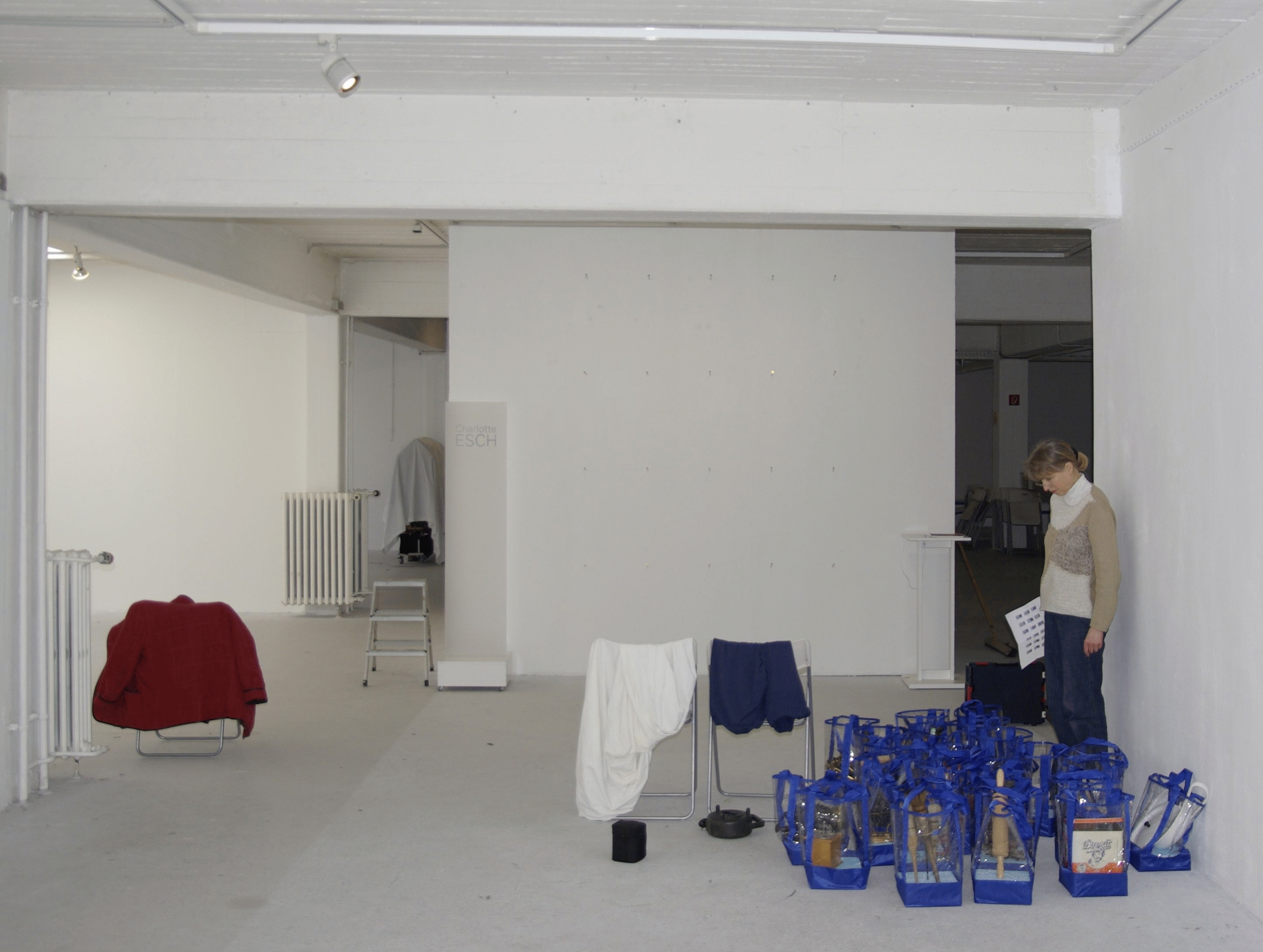 Installation der Gepackten Taschen von Charlotte Esch in der Hochschule Bonn-Rhein-Sieg
